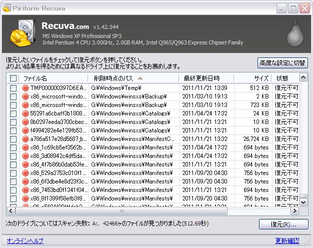 ファイル復元・データ復旧ソフトを数個試したよ の巻
